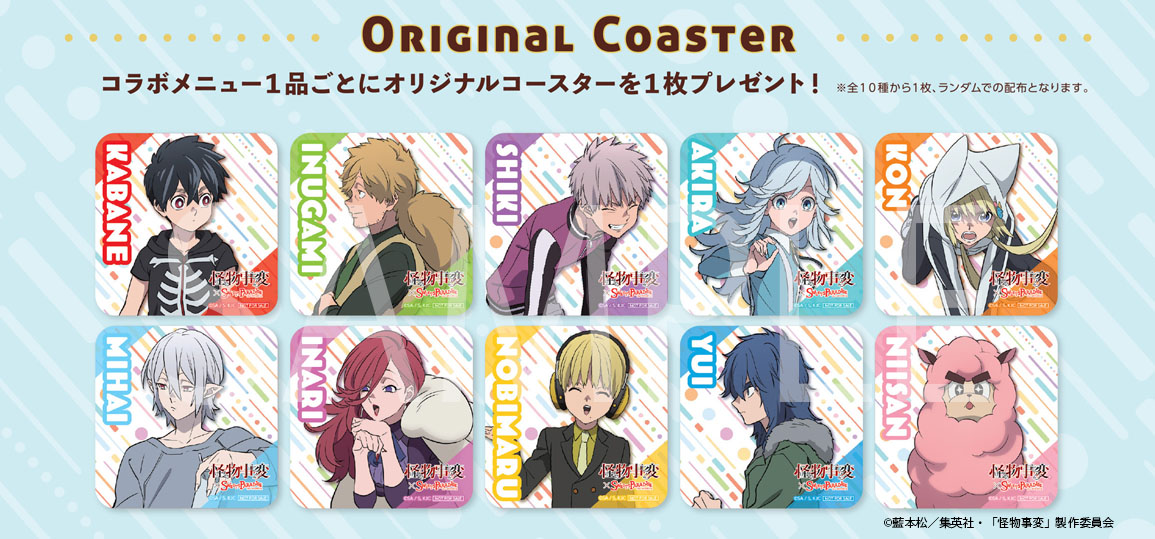 ・メニュー注文特典:コラボメニュー1品ご注文ごとにオリジナルコースター(全10種)を1枚プレゼント。