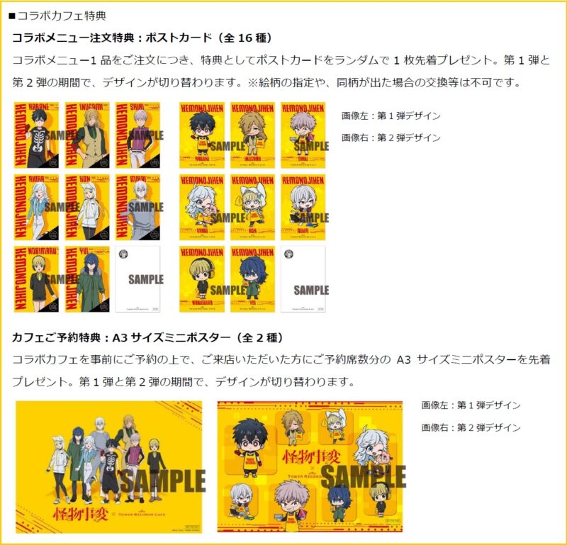 ・メニュー注文特典:コラボメニュー1品ご注文につき、「ポストカード(第1弾・第2弾 各8種/ランダム)」を1枚お渡しいたします。