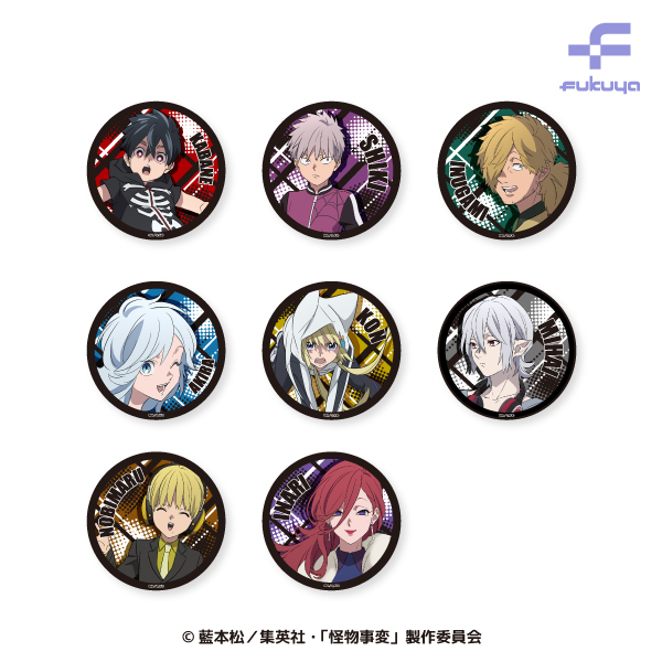 φ75mm缶バッジがセガ限定プライズで登場。 夏羽、隠神、織、晶、ミハイ、紺、野火丸、飯生の全8種類です。